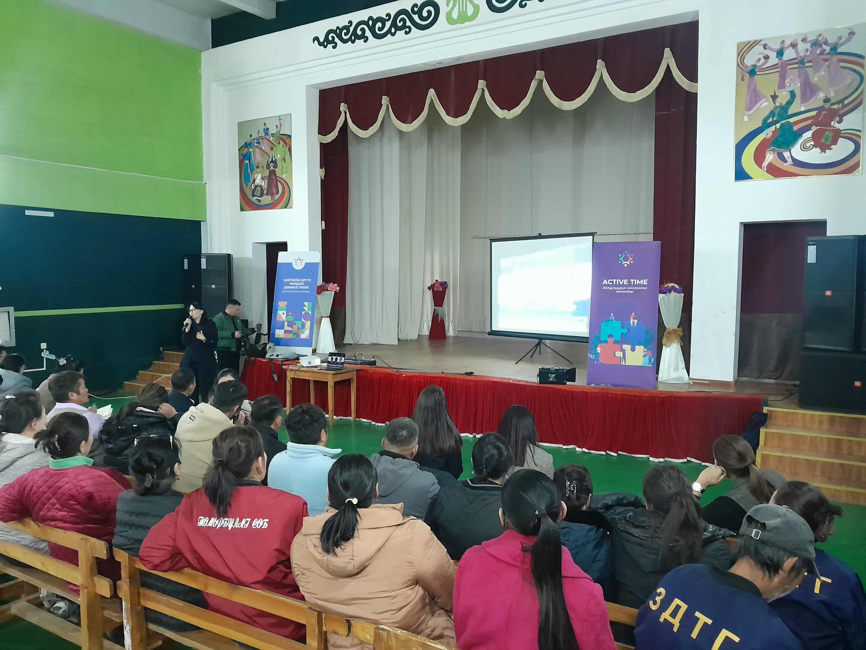 3."Active time" залуучуудын хөтөлбөрийн хүрээнд сумын залуу малчин 5, төрийн үйлчилгээний албан хаагч 5, Төрийн удирдах албан тушаалтан 5, хувиараа хөдөлмөр эрхлэгч 5 залуу нийт 20 залуучуудад сургалтыг зохион байгууллаа.